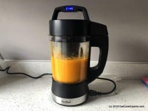 The soup maker will then heat up until the contents in the jug reach 100C. The dial will then show a countdown time of 10 mins. This is when the blender function will come on, if you chose the smooth option.