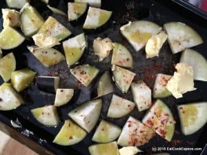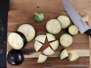 You don't have to salt the aubergines we get today as they are no longer bitter. You can season the cooked aubergine for flavour as you cook.
